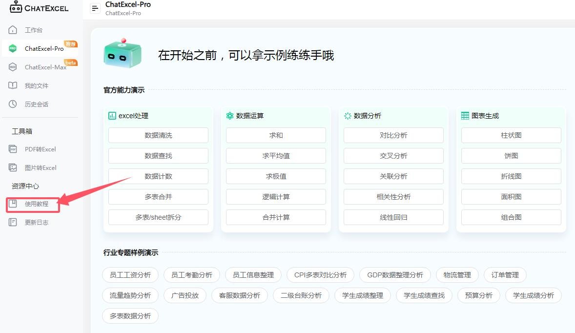 新手可在首页下方行业专题样例演示当中,详细了解处理表格的种种教程,包括员工工资分析,员工信息整理,广告投放,学生成绩分析等,适用于不同领域与行业。工具箱中也有格式转换,包括pdf转Excel、图片转Excel。