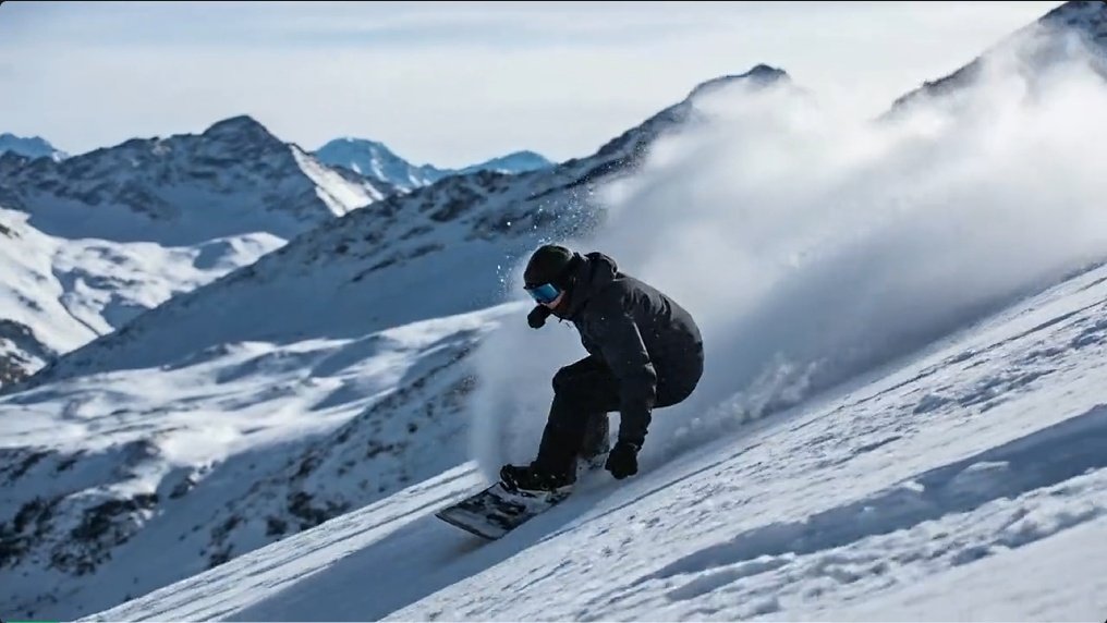 I2V prompt:滑雪者身着专业装备在雪山背景中展现敏捷技巧。镜头以长镜头低角度跟随滑雪者滑下雪坡,捕捉卡宾切刃、雪雾炸开瞬间,随后快切至慢镜头特写,最后跟随滑雪者转向冲出弯道。背景音乐为动感 Future Bass,配合风声环境音,整体氛围充满活力。