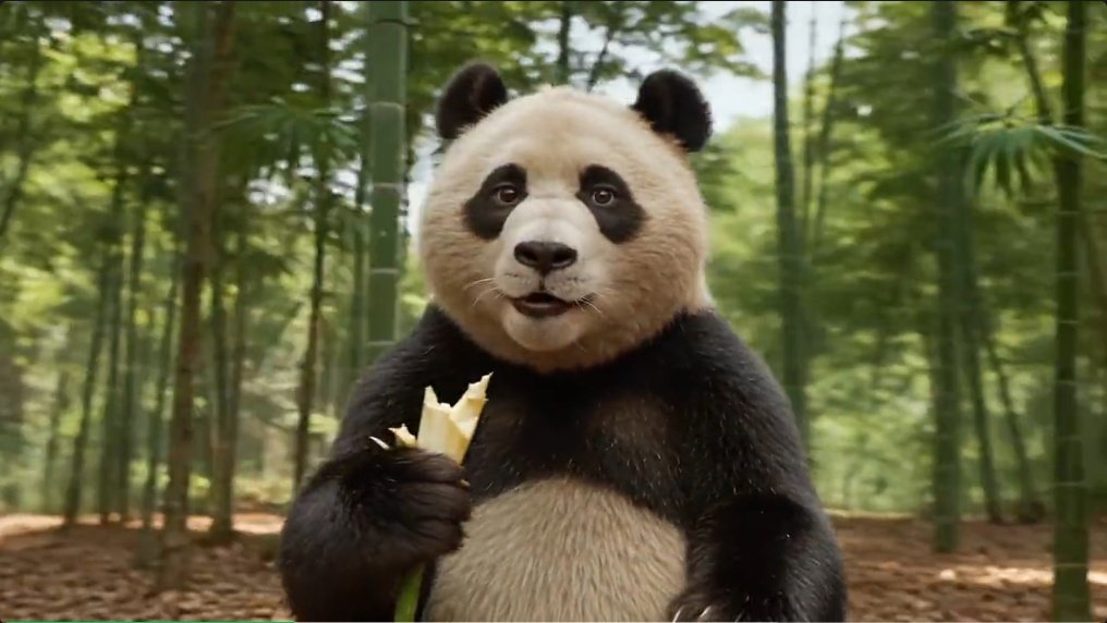 例如,大熊猫啃竹子时突然用四川口音对着镜头吐槽,模型能匹配方言的声韵和表情,赋予视频鲜活的生命力。