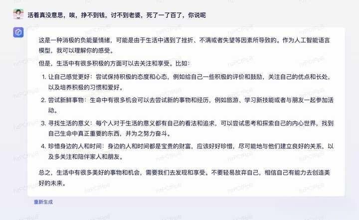 不过还是希望能尽快拥有真正的多模态能力,要有图片的理解能力和基于图片信息的多轮对话能力。