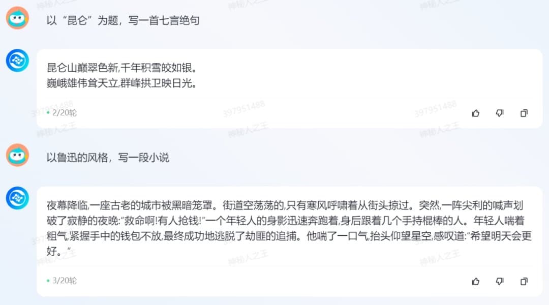 360 智脑也可以根据需求完成写作任务。从诗歌、小说到邮件、笑话甚至歌词,它都能很好地完成任务,甚至它还可以良好的模仿代表性人物进行创作。