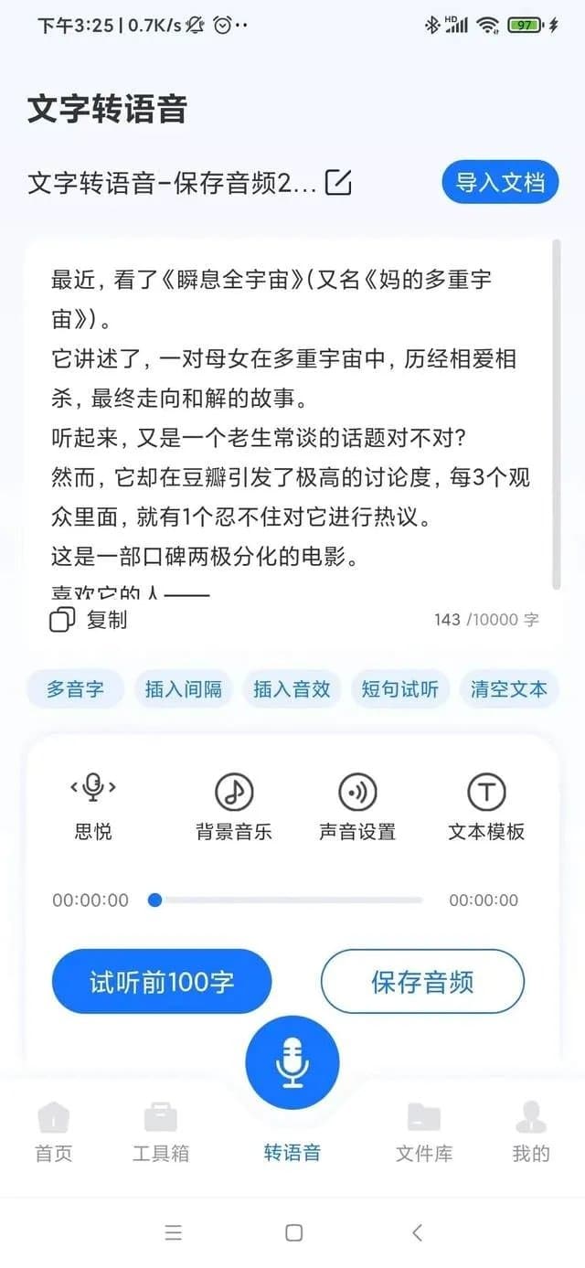 今天就给大家分享一款全网好评的配音工具——文字转语音助手,声音超级自然,让你高效制作短视频,抓紧收藏!