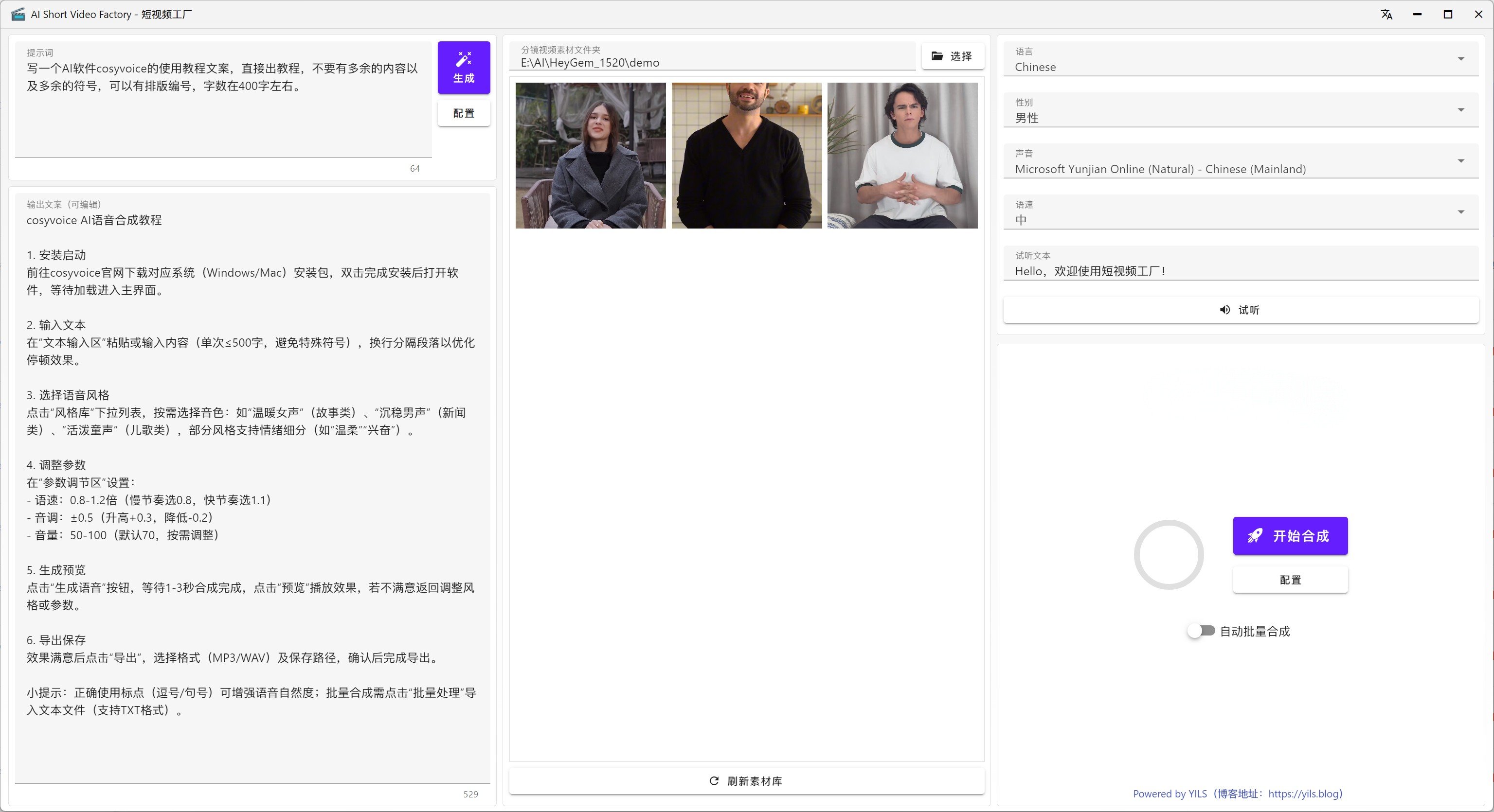 ● 语音合成:将文案转换为自然流畅的语音。