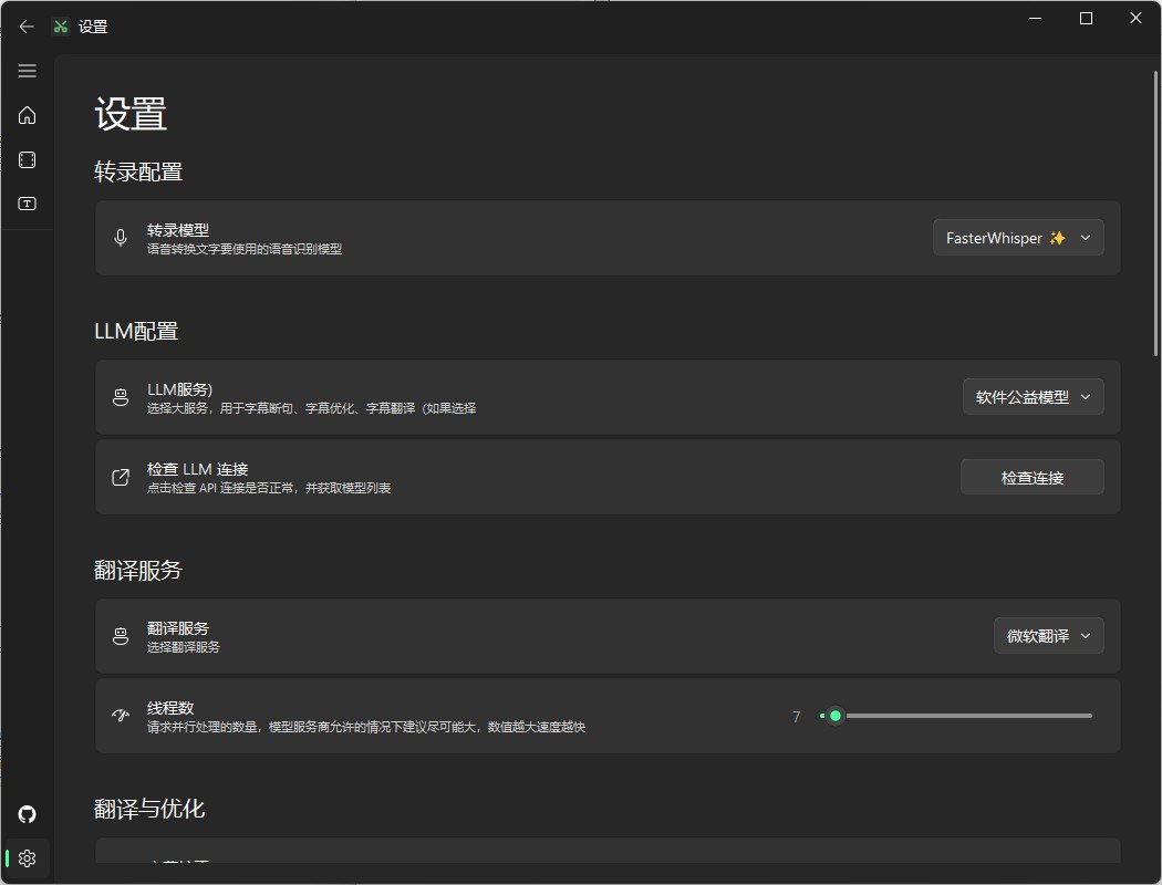 卡卡字幕助手(VideoCaptioner)是一款基于大语言模型(LLM)的智能字幕生成工具,无需GPU即可快速合成高质量字幕视频。它提供从生成、断句、优化到翻译的全流程支持,让视频字幕制作变得简单高效。