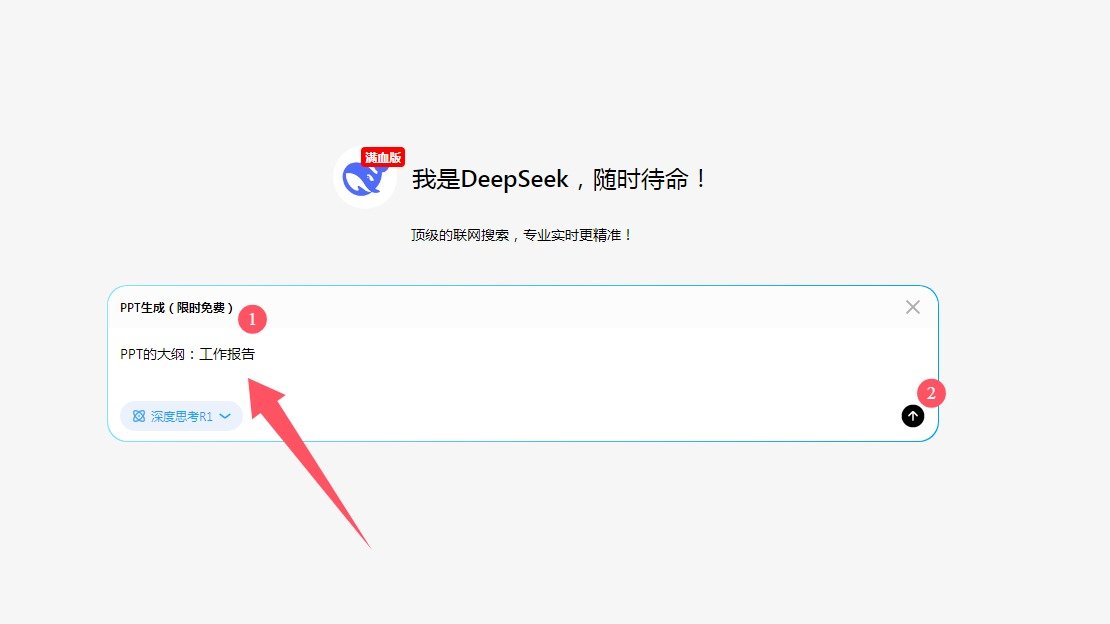 将自己所制作的ppt大纲输入完成后,即可点击右下角的向上箭头完成搜索。